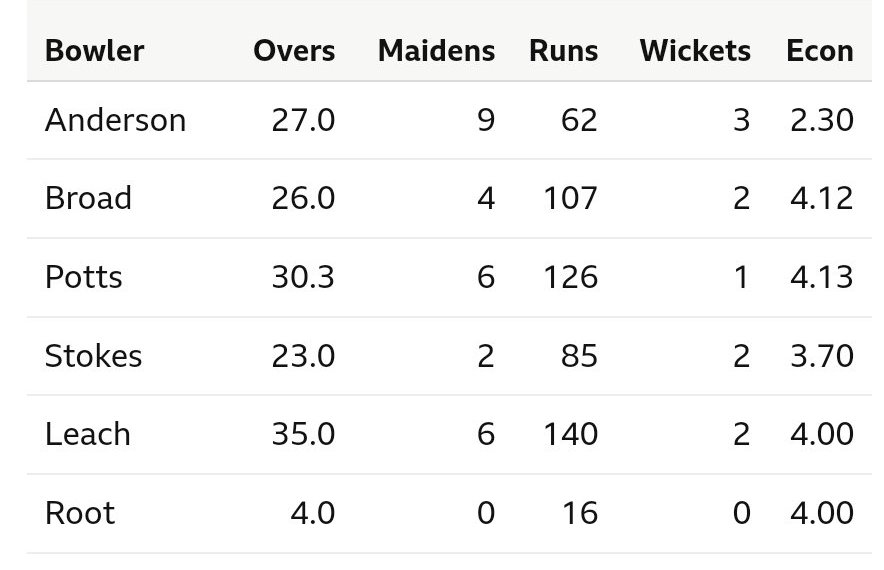 A word for Matt Potts who made a fine debut with 7 wickets accross the 2 innings, and snaffled Kane Williamson both times. Potts would lose his place late in the summer, but a fine start and he will surely go on the winter tour.